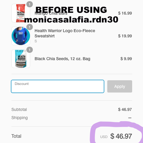 *Health Warrior & Chia Seed Lovers! I recently joined Health Warrior Ambassador Program & I received free product from them to try myself and GIVEAWAY to you!! I also have a code to share with you! Use the code monicasalafia.rdn30 code for a 30% discount on anything on healthwarrior.com !