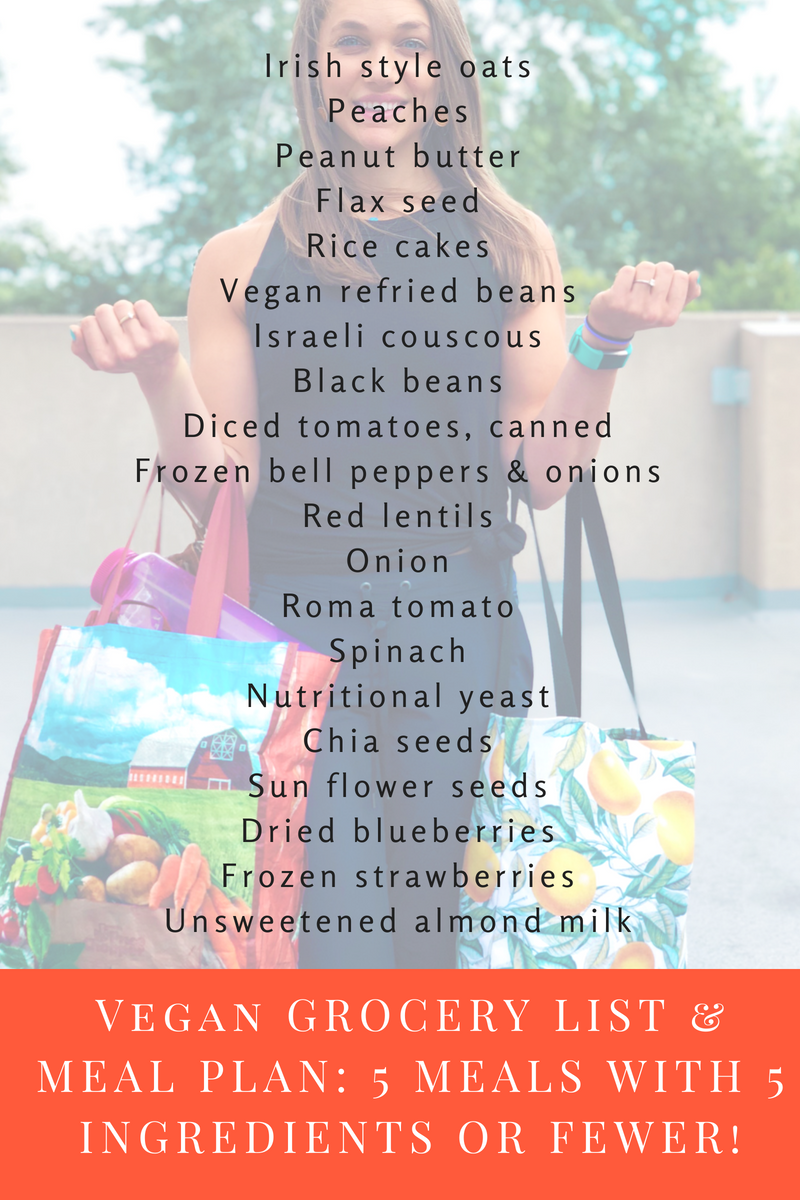 Vegan GROCERY LIST & MEAL PLAN: 5 MEALS WITH 5 INGREDIENTS OR FEWER!